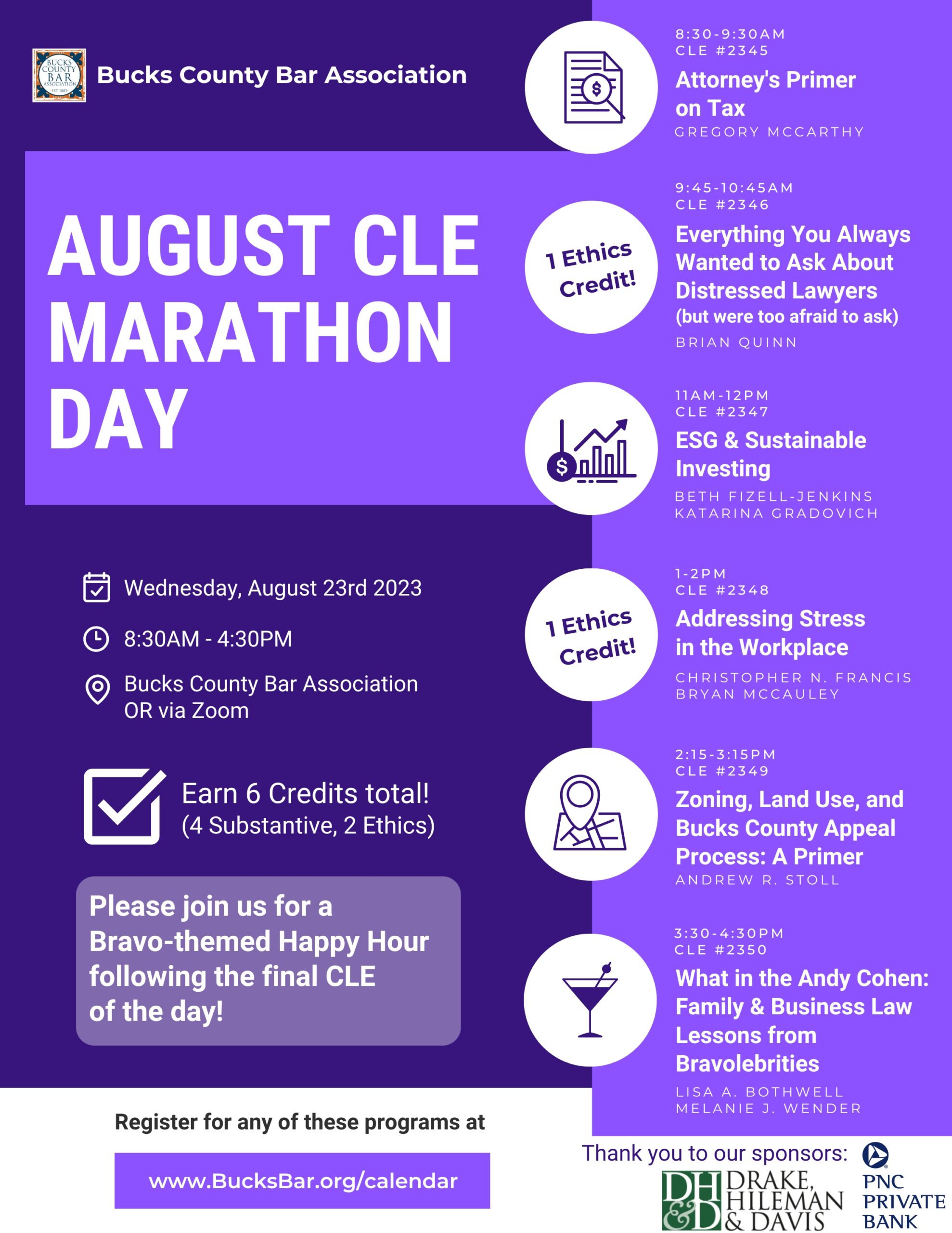 The program at the Bucks County Bar Association will be followed by a Bravo-themed Happy Hour following the final CLE session. Participants in the full day program may earn a total of 6 CLE credits, including 4 substantive and 2 ethics. For more information or to register, visit https://9jj.9af.myftpupload.com/calendar/